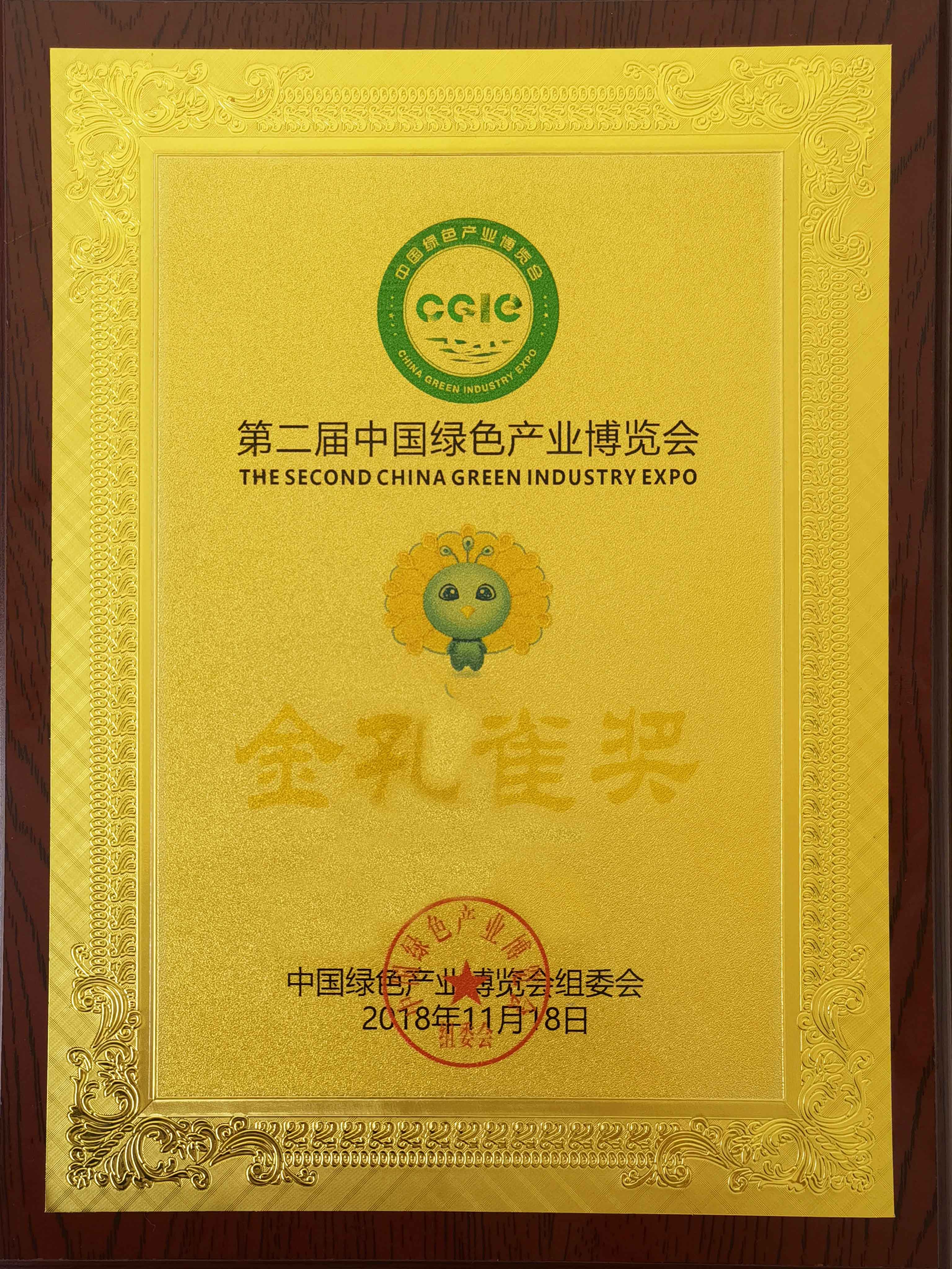 第二屆中國綠色產(chǎn)業(yè)博覽會金孔雀獎
