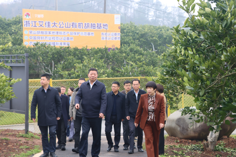 上午時(shí)分,鄭志兵部長(zhǎng)一行首先踏入了浙江艾佳太公山有機(jī)胡柚基地。春風(fēng)和煦,胡柚景觀大道兩旁綠意盎然,胡柚觀景臺(tái)俯瞰著整座有機(jī)常山胡柚果園,胡柚文化展廳則訴說(shuō)著這一特色產(chǎn)業(yè)的悠久歷史與輝煌成就。公司董事長(zhǎng)欽韓芬親自接待,并向鄭部長(zhǎng)一行詳細(xì)介紹了太公山有機(jī)胡柚基地從初創(chuàng)到壯大的發(fā)展歷程,艾佳有機(jī)胡柚的種植技術(shù)創(chuàng)新,以及有機(jī)產(chǎn)品的獨(dú)特魅力。欽董事長(zhǎng)還展望了未來(lái),分享了公司圍繞胡柚產(chǎn)業(yè),融合農(nóng)業(yè)、文化、旅游三產(chǎn),打造農(nóng)文旅一體化發(fā)展藍(lán)圖的宏偉規(guī)劃。